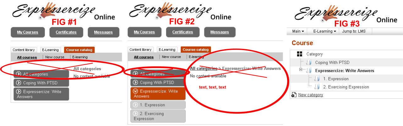 In fig #1 I've circled the "All Categories" menu button and the words "All categories - No content available"