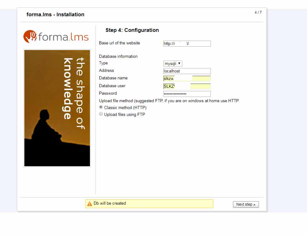 Hai inserito all'inizio un nome di database in maiuscolo (e creato in maiuscolo), poi lo step6 utilizza il nome del database in minuscolo . Se così è questo è un bug. il nome del database deve essere utilizzato e memorizzato nel file config.php così come digitato negli step precedenti.