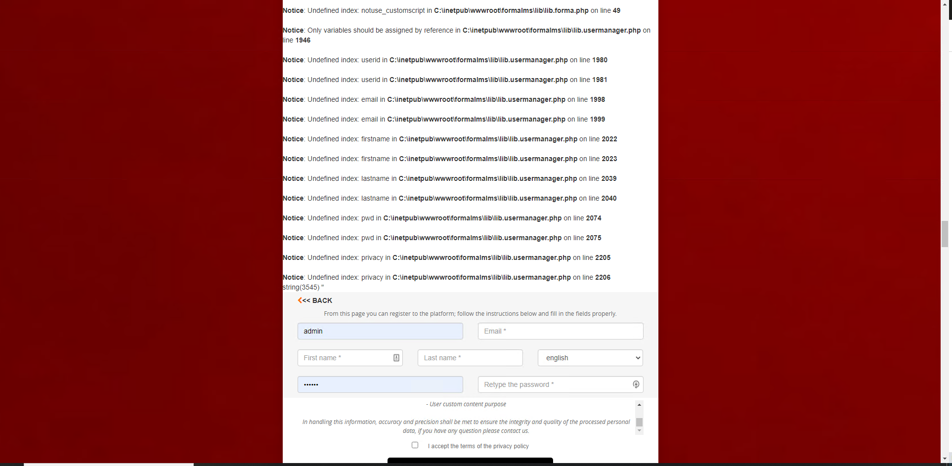Notice: Undefined index: pwd in C:\inetpub\wwwroot\formalms\lib\lib.usermanager.php on line 2074