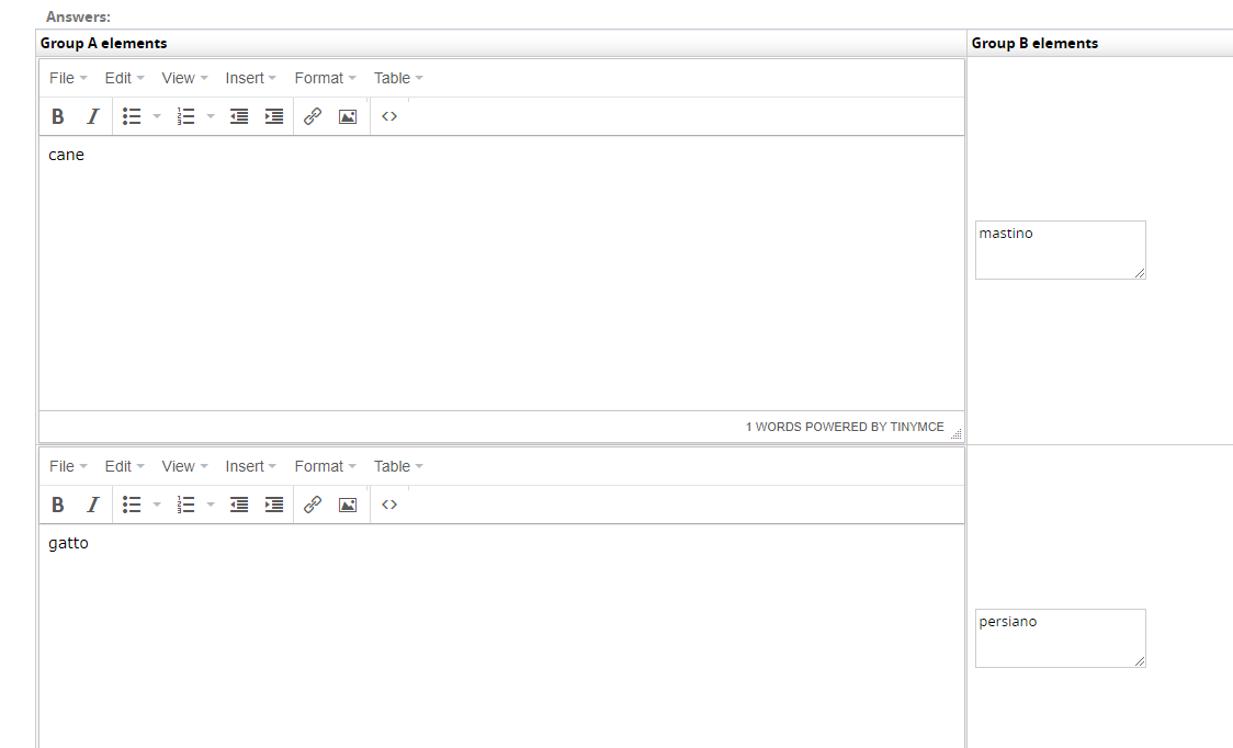 Grazie per la celerissima risposta. In quella fase, come da tuo screenshot, non vi sono errori. L'errore appare dopo, quando si scelgono le associazioni con punteggio (vedere screenshot allegato - 1). Lì, inserite le corrette associazioni e salvate le impostazioni dei punteggi, rientrando, si ritrovano le select "azzerate", senza la corretta risposta scelta, è infatti selezionata la prima voce della select (vedere scrrenshot allegato - 2).