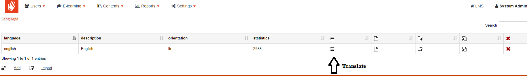 To change the language (wording) of any part of the FormaLMS site, you need to use the Language Management option. To do so first go to the language settings option under the settings in the admin area.