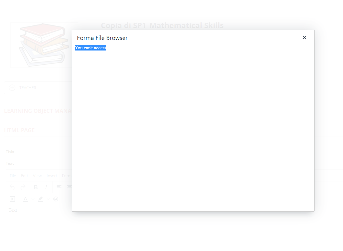 When a course admin or instructor wants to upload a media file he receives the following error in the File Browser popup: