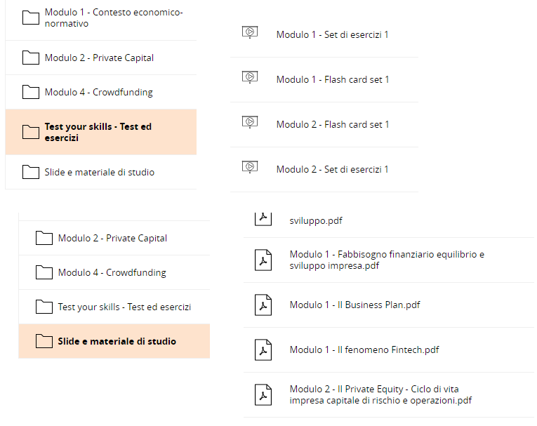 All'interno delle prime 3 cartelle si trovano oggetti didattici video e test.