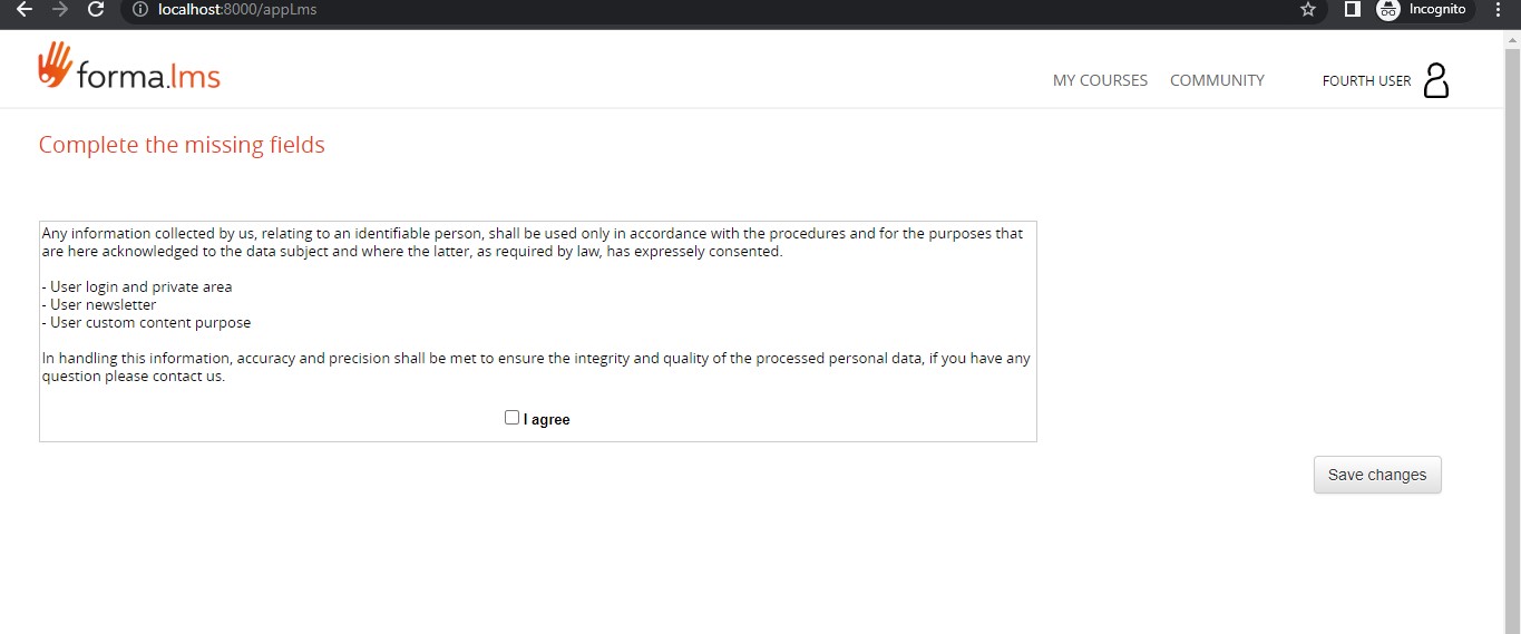 - if you selected that the user must fill in mandatory additional fields upon the first access.
