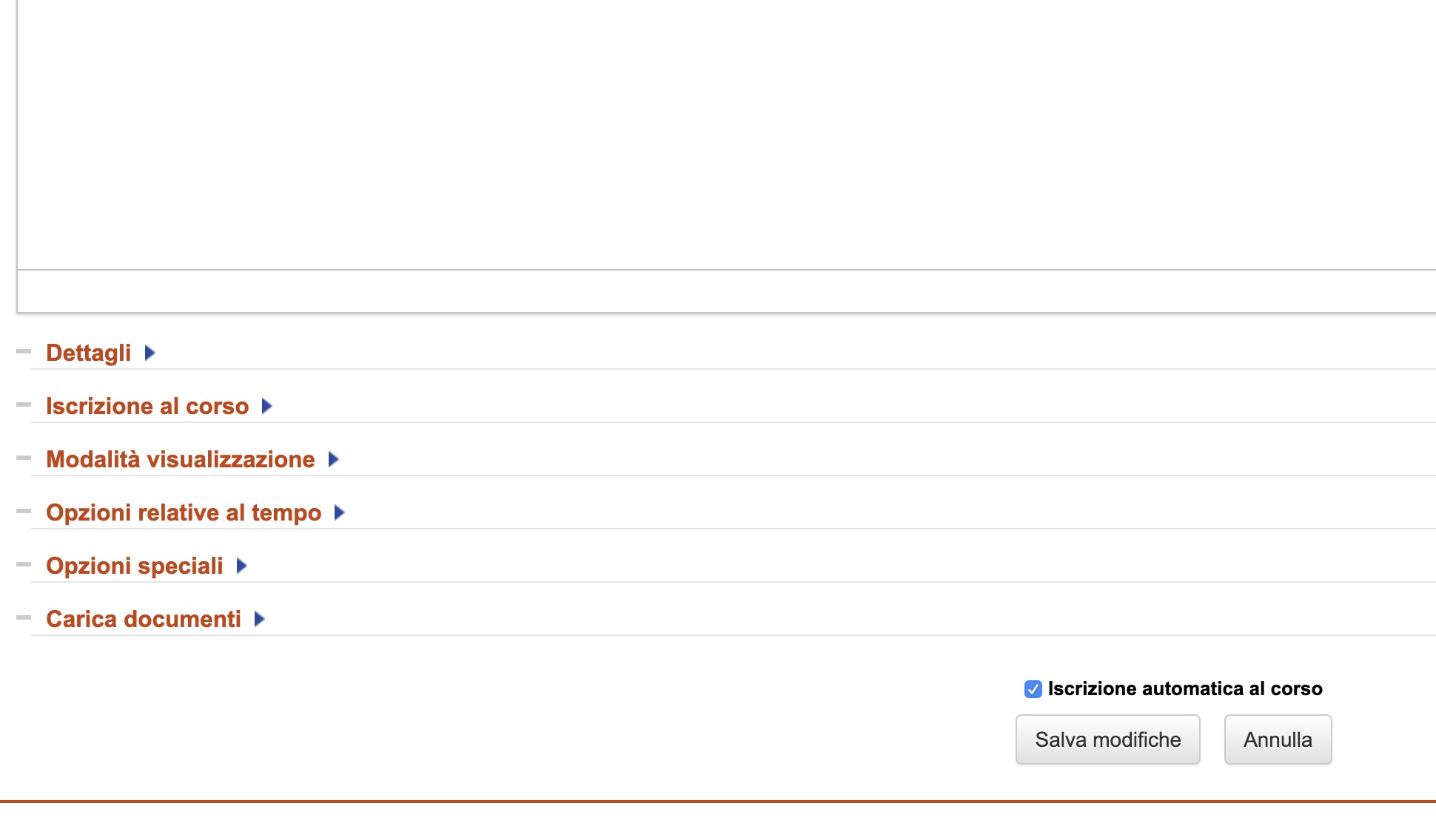 In pratica mi da in automatico "Iscrizione automatica al corso" se la deseleziono e salvo, mi rimane sempre attiva.