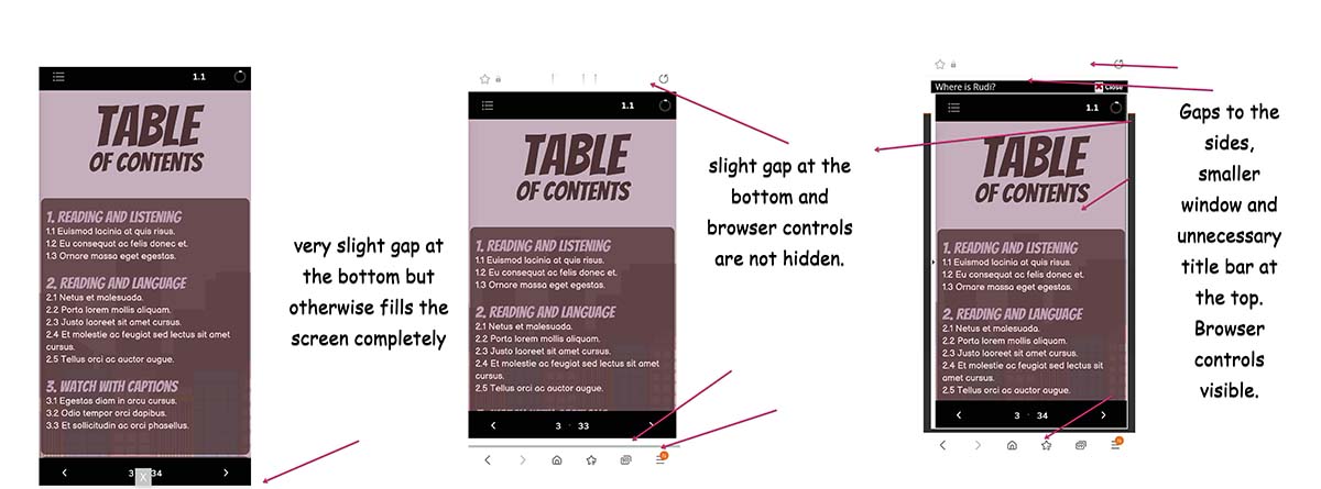 There is however a fair amount of space lost around the sides. Here are screenshots from Cluevo, Moodle and FormaLMS 2.3. Remarkably I have not changed the image size - they are all screenshots from my mobile, a Galaxy Note 10+. Imagine viewing on a smaller screen. I think Cluevo is displaying in a lightbox and it has far larger real estate. It looks great. Moodle is in a new window and while not great, I think is tolerable. FormaLMS is losing a lot of real estate. There are gaps to the left and right and an extra title bar on top which on desktop is fine but on mobile looks clunky. FormaLMS 3 makes the experience less clunky. In fact, it looks quite smooth. However, it makes the screen that much smaller. You lose the black border area, then a further white border area before you actually get to the content. On a mobile device, that is a lot of space.