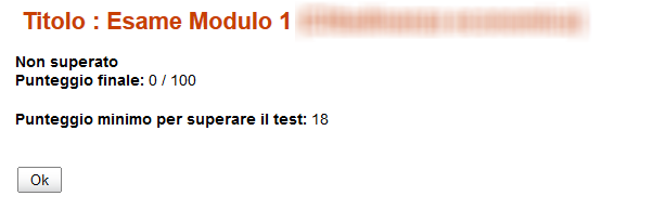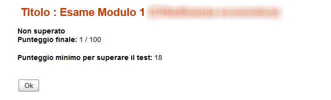 Ho però riscontrato un problema serio: se sostengo il test, rispondo a tutte le domande (normalmente ho i pulsanti Indietro e Prosegui), termino il test con il pulsante Invia le risposte all'ultima all'ultima domanda, ottengo correttamente i risultati come nella figura sottostante (il punteggio è zero perchè ho dato tutte risposte sbagliate