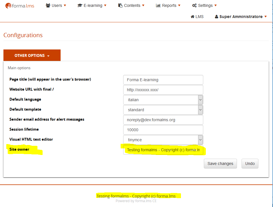 E se invece di toglierlo io volessi solo aggiungere testo a "Powered by forma.lms CE" ? Non trovo la stringa